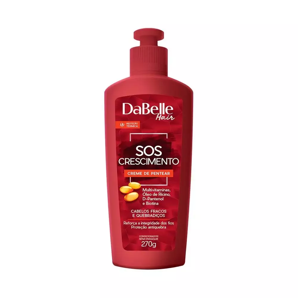 AÇÃO/ATIVOS: Desenvolvido a partir de Multivitaminas, Óleo de rícino, D-Pantenol e Biotina, ativos importantíssimos para proporcionar fortalecimento, hidratação, estimulando o crescimento saudável dos fios. Além de conter um aroma delicioso, o sos Crescimento, se torna ideal para facilitar o desembaraço, enquanto deixa os fios super saudáveis, as cutículas alinhadas e com redução da quebra fios