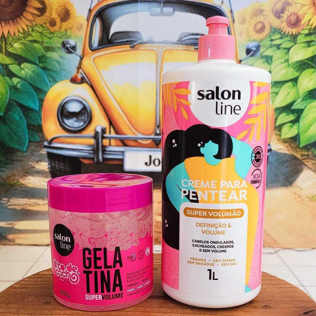 Kit Creme p Pentear Super Volumão 1L + Gelatina 550g da Salon Line