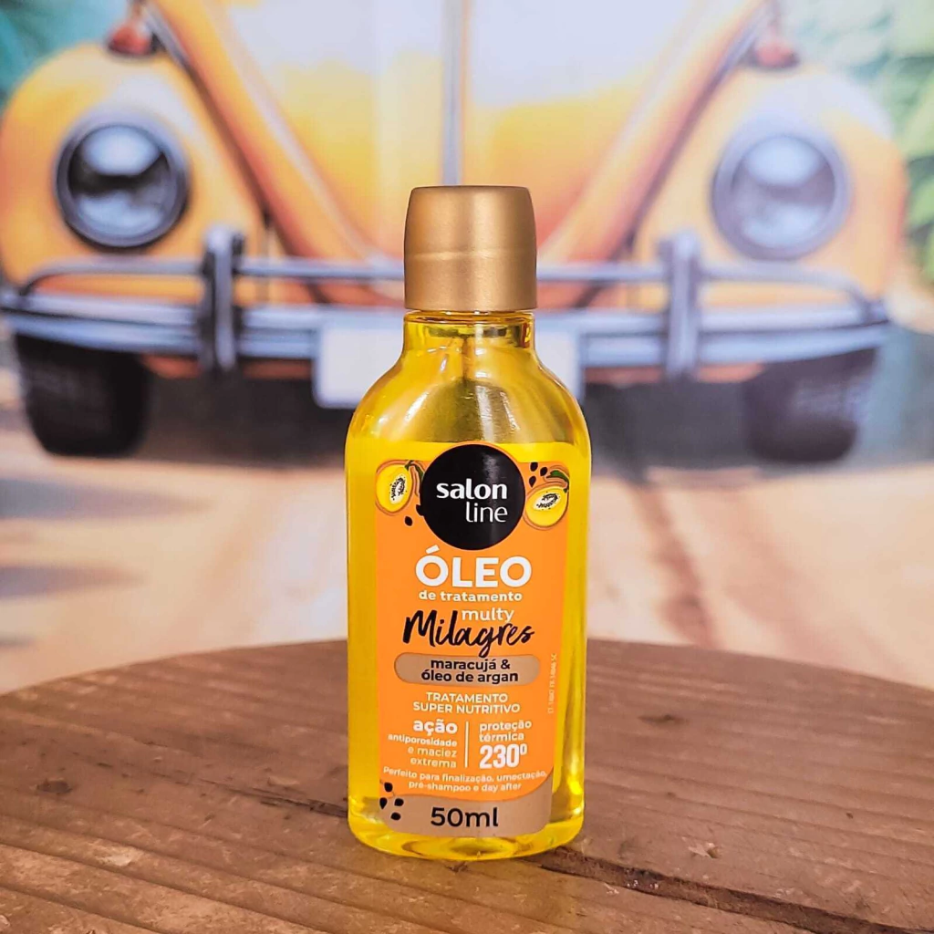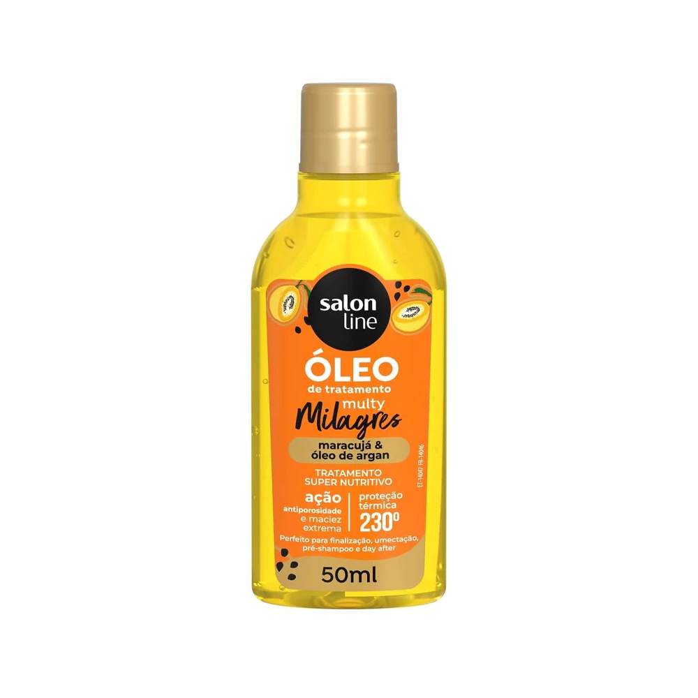 O Óleo de Tratamento Multy Milagres Maracujá da Salon Line é um produto multifuncional, ideal para diversas etapas do cuidado capilar, como finalização, umectação, pré-shampoo e day after. Disponível em embalagem de 50ml, este óleo proporciona ação antiporosidade e maciez extrema aos fios, além de oferecer proteção térmica de até 230°C.