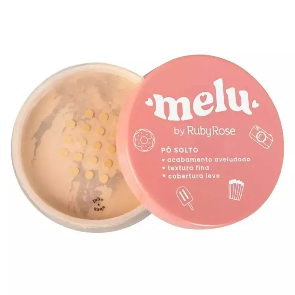 O Pó Solto Melu Cor 02 (referência RR-852/2) da Ruby Rose é uma excelente opção para quem busca um acabamento aveludado e natural na maquiagem. Este pó possui uma textura ultrafina e é ideal para todos os tons de pele, já que se adapta ao tom natural do rosto, proporcionando um efeito translúcido. Ele ajuda a disfarçar os poros e não marca nem craquela a pele, mantendo a maquiagem intacta ao longo do dia.
